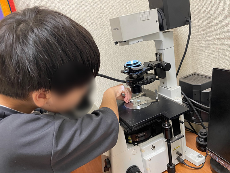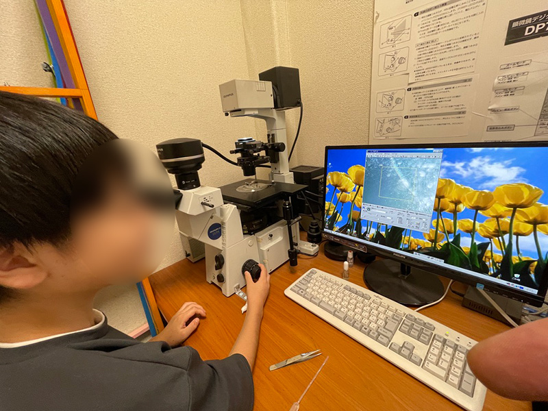 実験のあと、「水を顕微鏡で見たい」とスクール生。