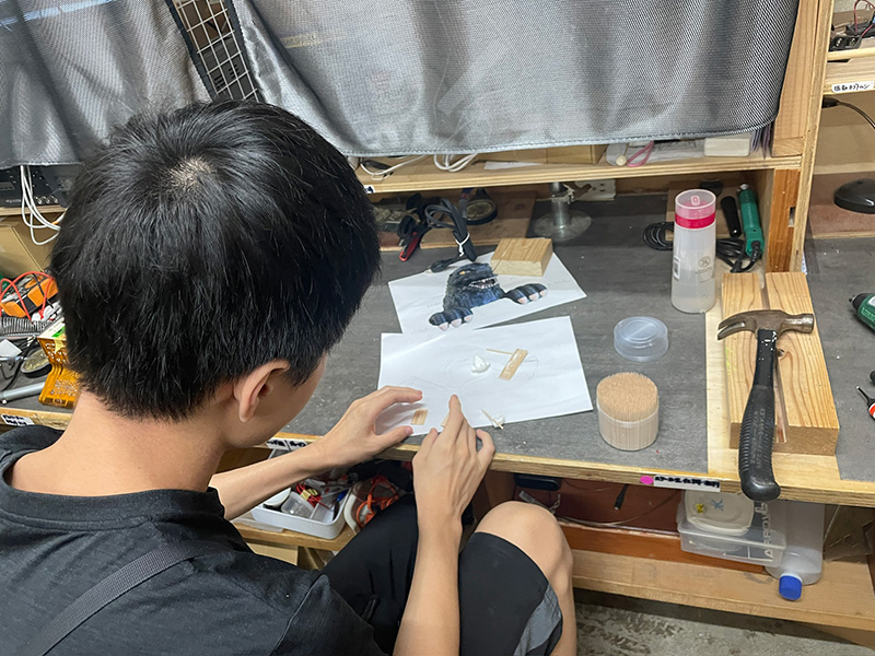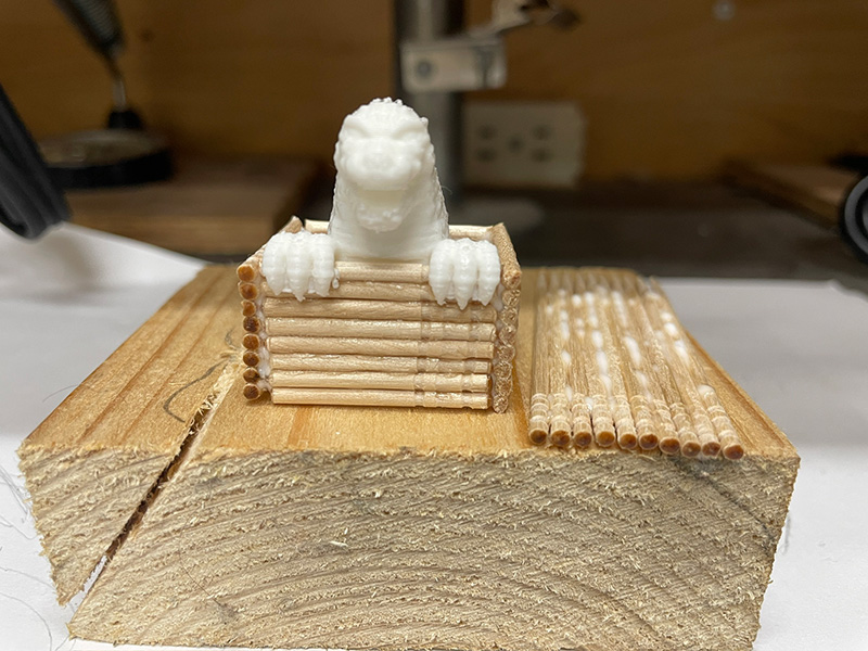 ゴジラ製作ではなく、爪楊枝で檻を組んでゴジラを閉じ込める生徒、