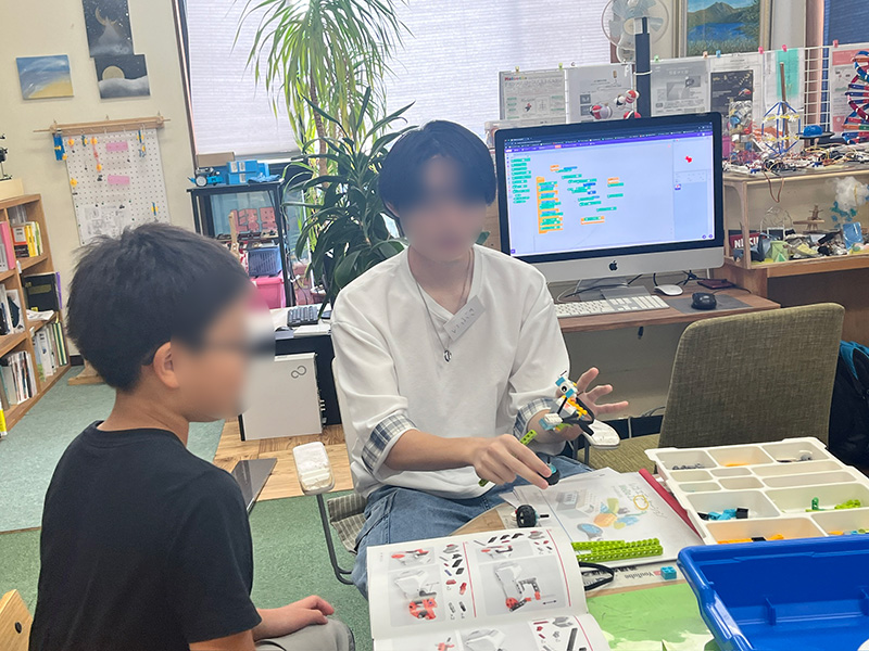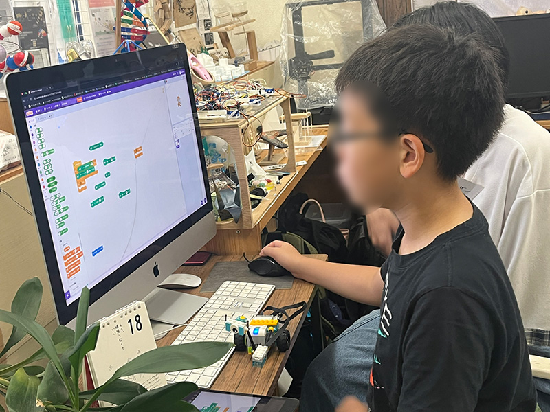 2025-10-18 / 最終更新日時 : 2025-10-22 コニー マイム科学創楽クラブ 10月のマイム科学創楽クラブ〜レゴでゴジラ・Scratchでプログラム! レゴでゴジラ!Scratchでプログラム!今回の活動は、レゴで作ったオリジナル「ゴジラ」モデルにScratch(スクラッチ)で動きをつけてみる挑戦! 高専生のやさしいサポートのもと、クラブ生たちは一つひとつのブロックを丁寧に組み立て、プログラムを試行錯誤しながら楽しそうに取り組んでいました 完成したらどんなふうに動くのか?ワクワクしながら次のステップへ! 「できた!」の瞬間が、次のチャレンジにつながっていきます。