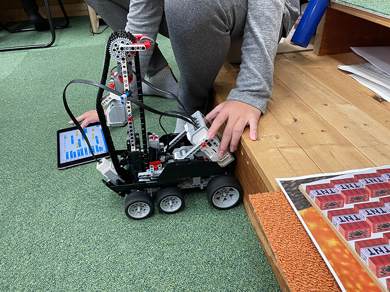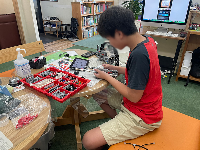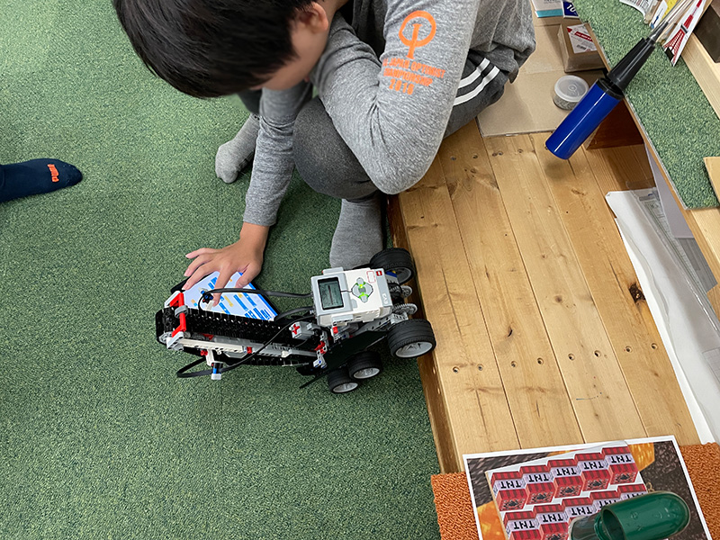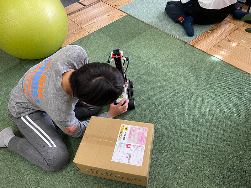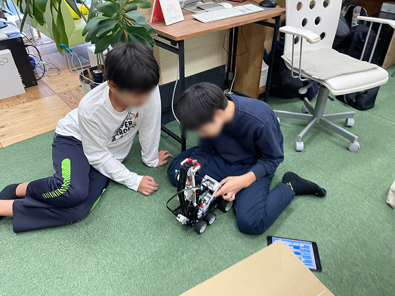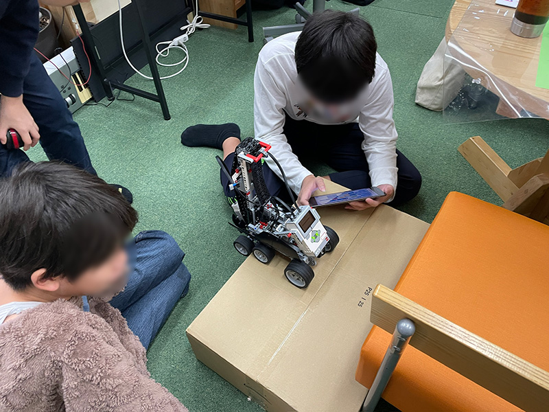 スクール生が挑戦していた「階段を登るロボット」づくり。