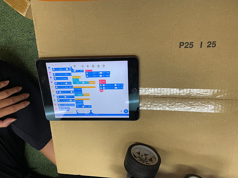 レゴマインドストームEV3で構造を組み、iPadでプログラムを試行錯誤。