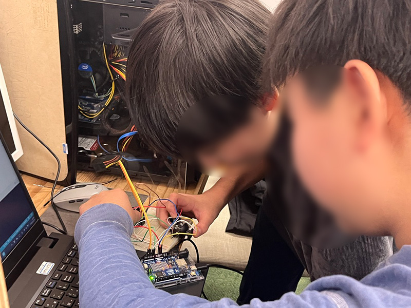 2025-12-08 / 最終更新日時 : 2026-01-12 コニー プログラミング カジタさんのマイコン講座〜2人対戦用スネークゲーム完成 カジタさんのマイコン講座😊「2人で遊べるゲームにしたい!」という生徒の声から、スネークゲームが 2人対戦仕様 に進化しました🎮 コードを直して、配線をつないで、動いた瞬間は思わず「おー!」✨自分たちのアイデアが本当に形になる時間です。