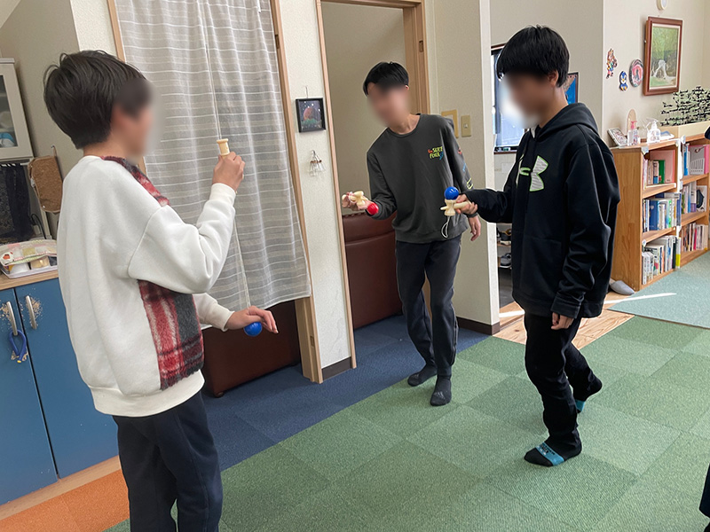 2026-01-06 / 最終更新日時 : 2026-01-24 コニー 交流 お正月遊びミニイベント 🎍【お正月あそびの時間】🎍 年明けは、けん玉・羽根つき・コマ回し・福笑い・竹馬など、昔ながらのお正月遊びに取り組みました。最初はうまくいかなくても、何度も挑戦するうちに少しずつコツをつかみ、笑顔が増えていく子どもたち。 室内では集中して手先を使い、外では体全体を使ってバランス感覚を養いました。遊びの中には、挑戦する力、失敗を受け止める力、そして人と関わる力がたくさん詰まっています。 今年も、一人ひとりの「やってみたい」を大切にしながら、安心して過ごせる時間を積み重ねていきます。