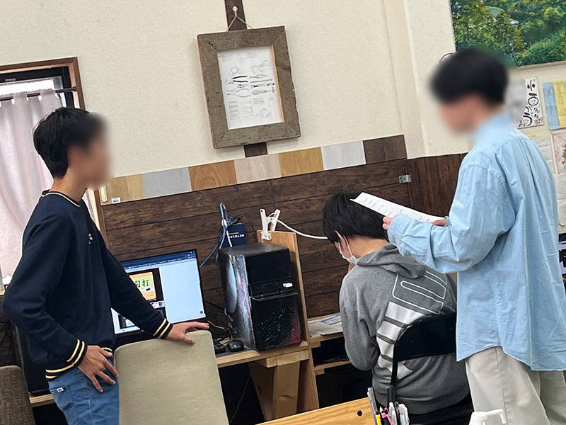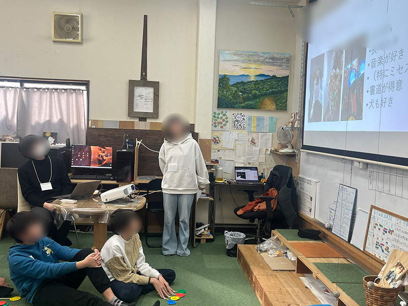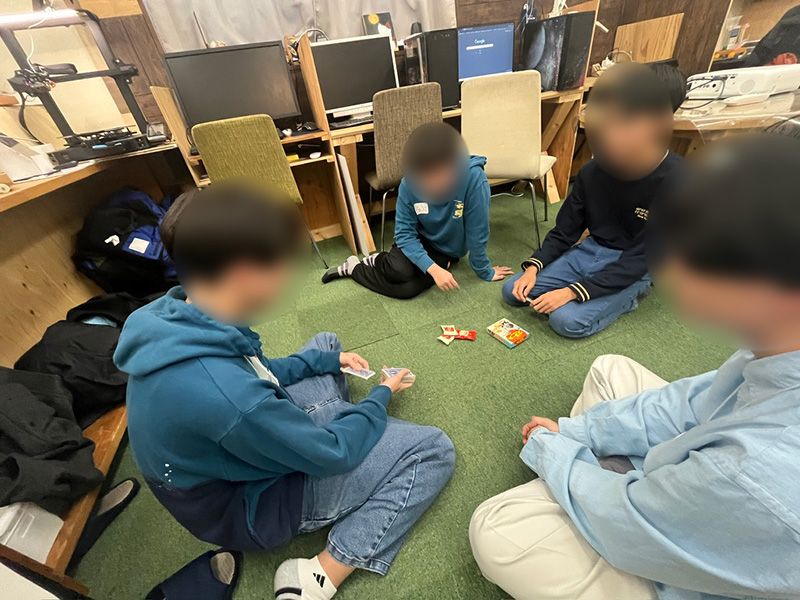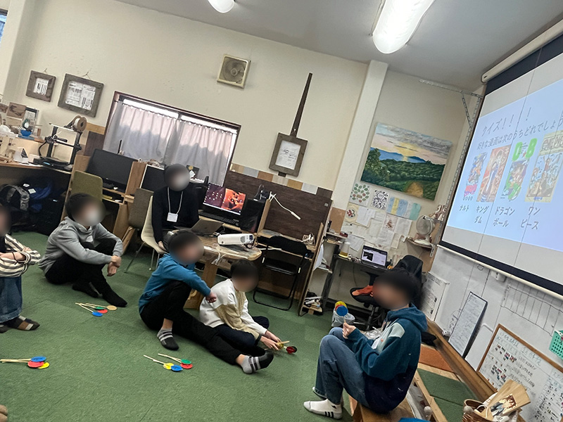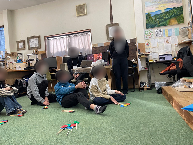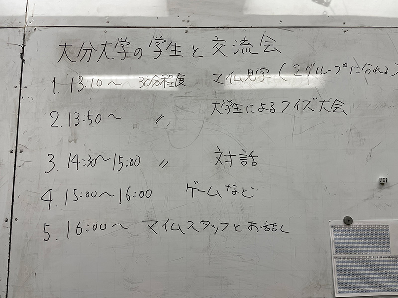 2026-01-16 / 最終更新日時 : 2026-01-24 コニー 交流 大分大学 教育学部「オルタナ探究部」× マイム 交流会 今回は、大分大学教育学部のオルタナ探究部のみなさんがマイムへ。 まずはマイム見学。なんと説明役は スクール生。普段の活動や、好きなこと、「なぜこれをやっているのか」を大学生にしっかり伝えてくれました。 続いて、大学生の自己紹介タイム。工夫いっぱいの 4択クイズに、スクール生も思わず前のめり👀 そのあとは3人ずつに分かれて、ゆっくりお話。年齢は違っても、「好き」や「気になること」はつながります。 最後はみんなで ボードゲーム交流。笑い声が広がって、いつの間にか距離もぐっと近くなりました。 「教える」「教えられる」じゃない、同じ目線での交流。とても良い時間になりました。